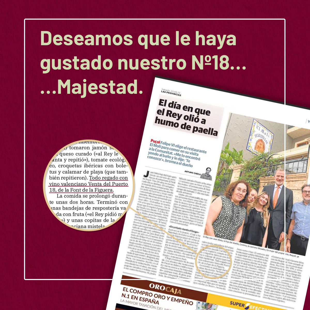 S. M. el Rey D. Felipe VI disfruta de nuestro vino más emblemático como maridaje perfecto a una exquisita paella valenciana En …