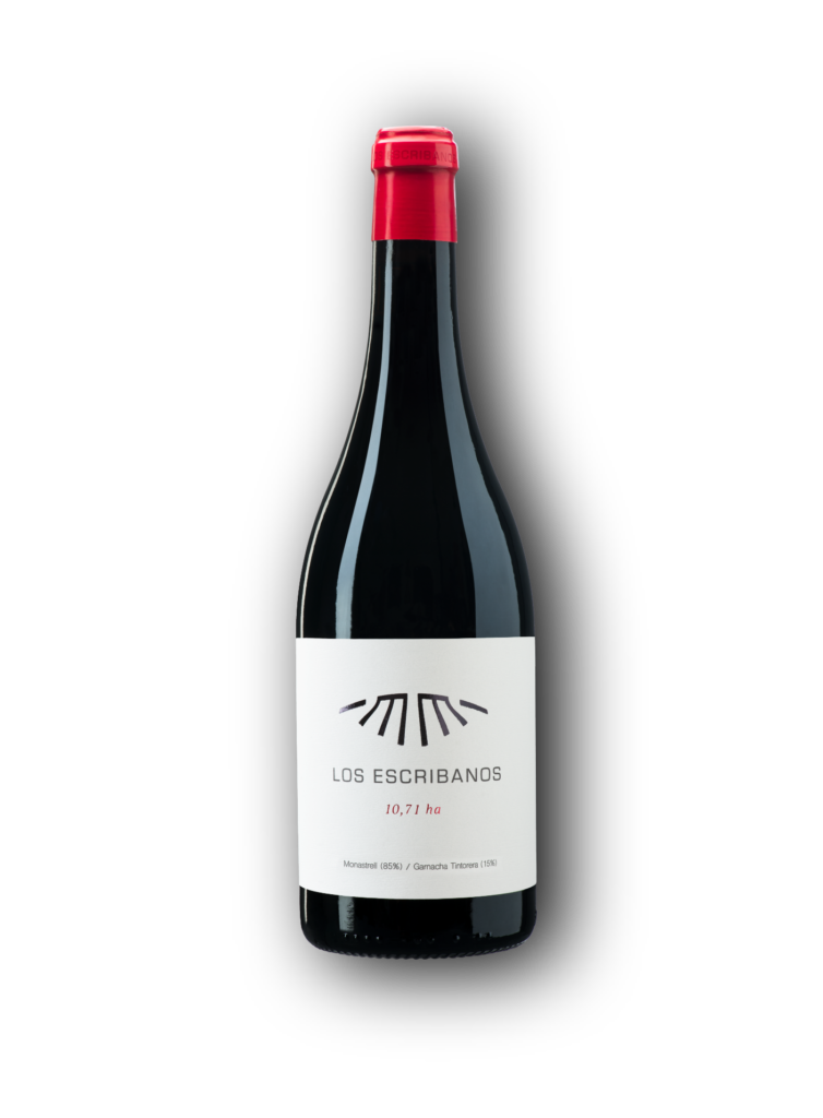 Este vino nació en 2018 a raíz de recuperar unos antiguos viñedos ubicados en el paraje Los Escribanos en La Font de la Figuera. Se trata de cepas viejas de entre 40 y 60 años, e incluso alguna más antigua, todas ellas plantadas en vaso que es el sistema más tradicional. Las viñas más viejas producen menos uvas, por este motivo su sabor es mucho más intenso y su calidad mucho mayor. Estas viñas, al estar plantadas en vaso, han de recolectarse de forma manual, por lo que hay que sumarle el valor de ser trabajadas de forma artesanal. Así, la uva del vino de Los Escribanos es seleccionada grano a grano para trabajar solo con aquellos que están en un óptimo estado, buscando siempre la excelencia. El resultado de todo este trabajo tan minucioso es un vino único donde se potencian las variedades autóctonas.